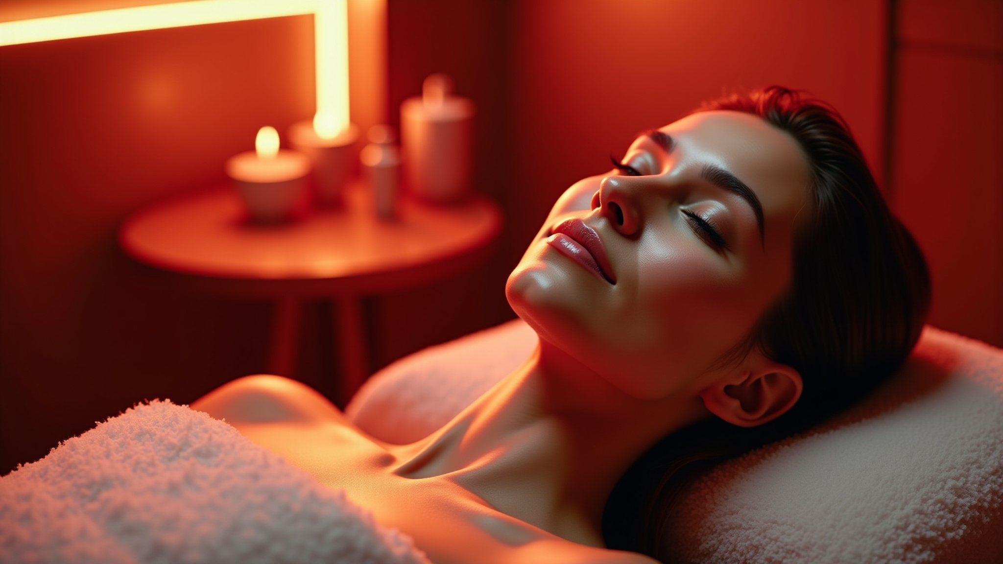 Experience the advanced technology of red light therapy for revitalizing your skin.